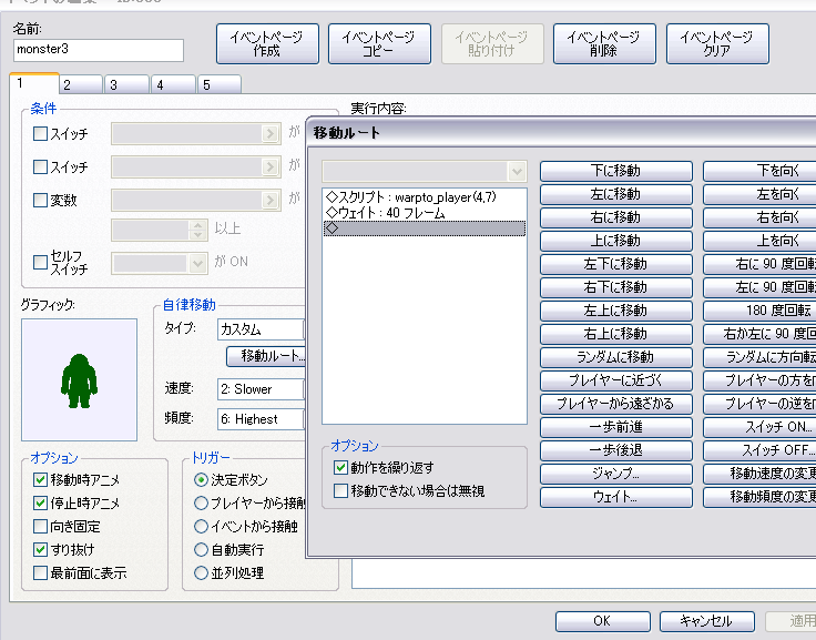 以前(http://tohohjk.blog.shinobi.jp/Entry/22/)に少し触れましたが、移動ルートの「スクリプト」は非常に便利です。